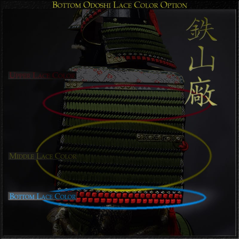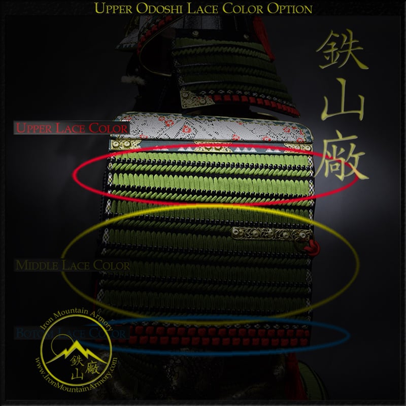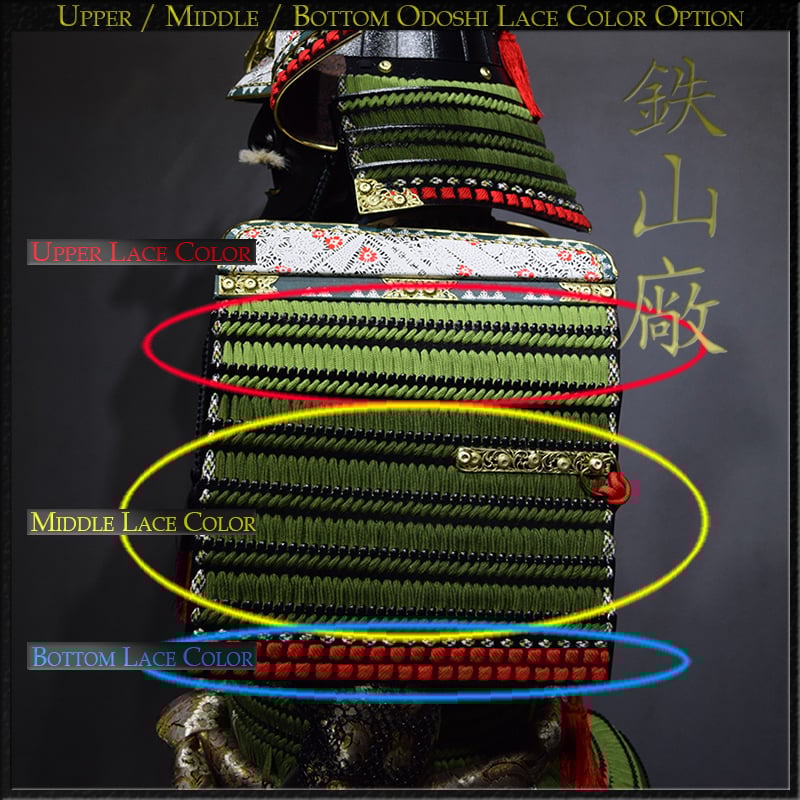 We offer complete customization of paint colors, odoshi (lace), kabuto styles, menpō (mask), and suneate (shin guards). You may also select mockup previews to ensure your lacing pattern is exactly as envisioned.