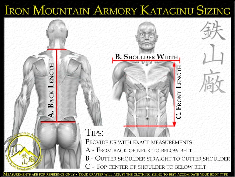 The Sizing Options for our Gashira Armors. Some options that are not standard may entail extra costs.