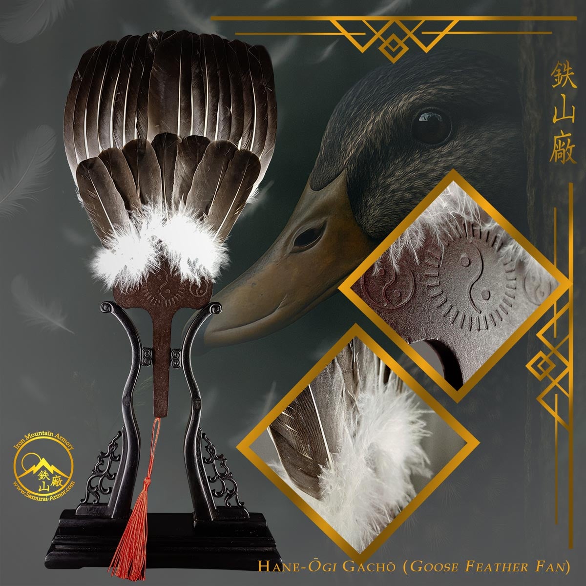 The Hane-ōgi (feather fan) has served Japan’s noble houses, warrior clans and temple halls from the Heian court to the present age. Crafted with natural feathers joined to a sturdy wooden or bamboo handle, each fan carries the quiet dignity of ritual, command and status. Whether in the hands of a monk performing purification rites or a daimyō (governing warlord) presiding over a formal gathering, the hane-ōgi (traditional feather fan) remains a symbol of refinement, discipline, and ancestral spirit within the warrior’s world.
