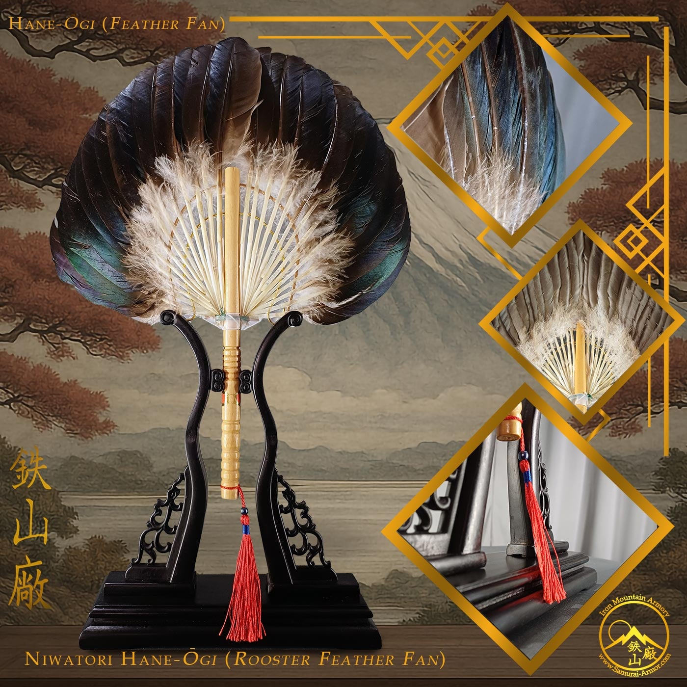Today, this fan continues its venerable journey. Displayed beside armor, scrolls, tea sets or lacquerware, it becomes a whisper of Japan’s warrior past, connecting your space to a lineage of honor. Whether chosen for ritual use, cultural performance or as a refined centerpiece, the hane-ōgi stands as a testament to timeless aesthetics and the enduring spirit of the modern warrior.